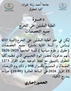الرئيسية/فضاء الطالب/دعوة لحضور اليوم التحسيسي حول القرار 1275 المعـــدل و المتمـــم بالقـــرار 008 دعوة لحضور اليوم التحسيسي حول القرار 1275 المعـــدل و المتمـــم بالقـــرار 008 9 9