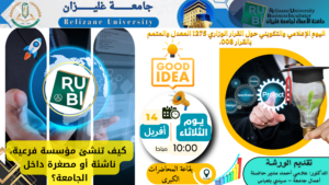 على الطلبة المسجلين في القرار 1275 الحضور لليوم التكويني حول القرار 1275 المعدل و المتمم بالقرار 008 الذي يحدد كيفيات إنشاء مؤسسة اقتصادية و ذلك يوم الثلاثاء 14 افريل 2026 بقاعة المحاضرات الكبرى