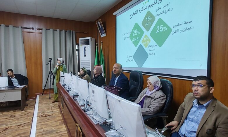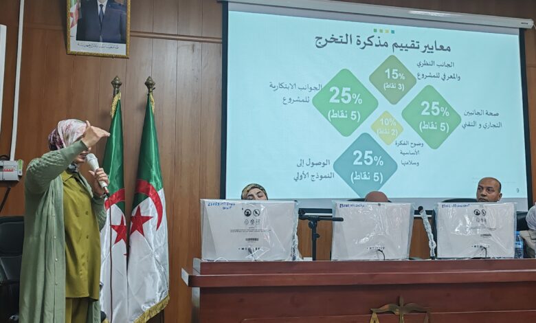 أشرف يوم الاثنين 16 نوفمبر 2025 نائب العميد المكلف بالدراسات و المسائل المرتبطة بالطللبة البروفيسور بوجانة محمد على اليوم التحسيسي حول القرار 008 المعدل و المتمم للقرار 1275 الذي يحدد كيفيات الحصول على شهادة جامعية -مشروع مؤسسة اقتصادية لفائدة الطلبة المقبلين على التخرج حيث شارك في هذا اليوم كل من اساتذة الكلية د.بلويس_براهيم و د.خالدي_أحمد و د.بن_زعمة_عبد_القادر و د.بلحاجي_أمينة و د.بزرل_كبير_عبد_الكريم و كذا أساتذة ممثلين عن حاضنة الأعمال د.قرين_كمال و د.بلهاشمي_جهيدة و د.بوروبة_فتيحة و مساعدة الطاقم الإداري للكلية و قد حضر الطلبة المقبلين على التخرج.