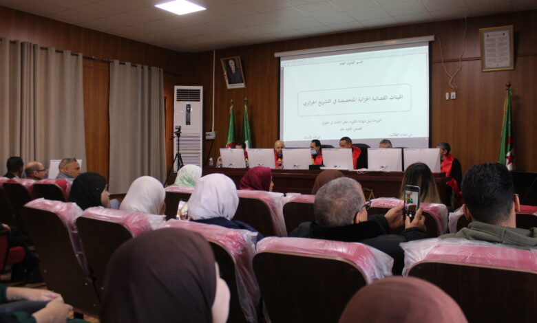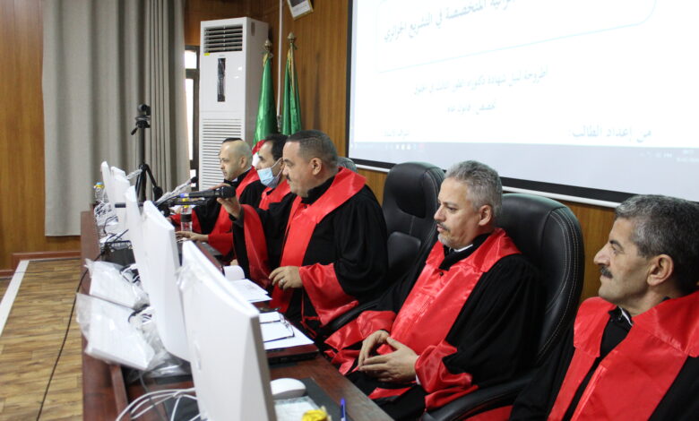 جانب من مناقشة أطروحة دكتوراه التي جرت يوم الخميس 05 فيفري 2026 الموسومة ب:” الهيئات القضائية الجزائية المتخصصة في التشريع الجزائري” من إعداد الطالب قديدر اسماعيل و تحت إشراف البروفيسور عليان عدة أما لجنة المناقشة المكونة من: